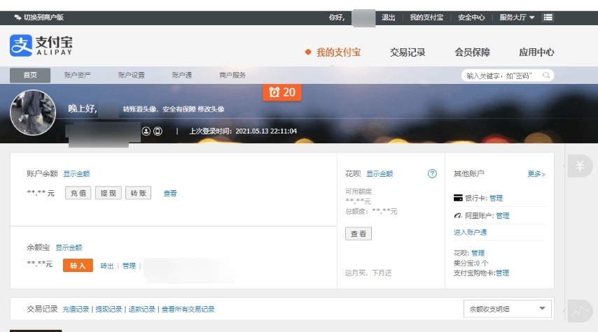进入支付宝官网,登录自己的支付宝账号,如果登录后是商户版的界面,请手动切换到个人版。仅支持导入个人版的支付宝账单文件。