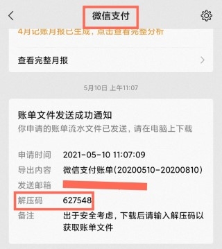 输入支付密码,确认导出账单,之后账单文件的压缩包会发送到指定的邮箱中