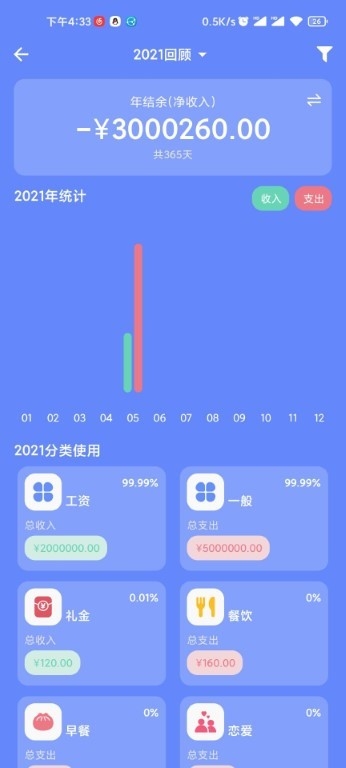 入口:首页 -> 点击顶部 收/支/结余概览卡片